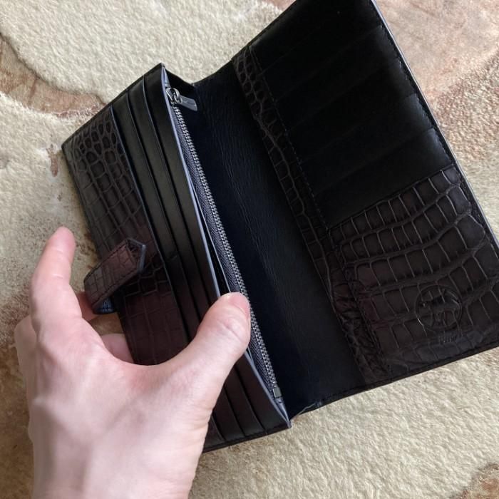 クロコダイルの一番高級な腹部位全体を使用し、一匹から財布一個だけ最も贅沢な方法で作成しています。