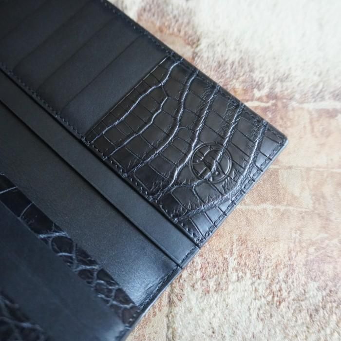 クロコダイルの一番高級な腹部位全体を使用し、一匹から財布一個だけ最も贅沢な方法で作成しています。